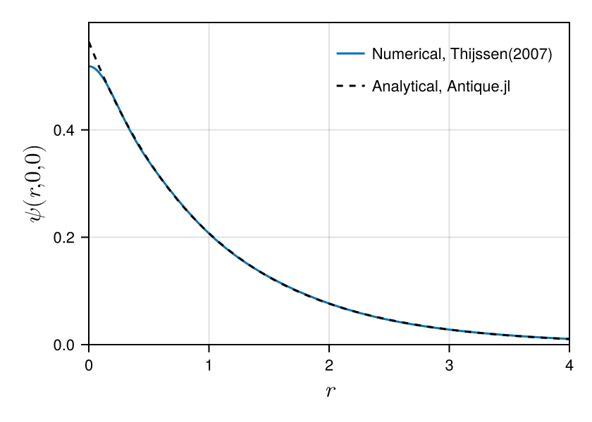 axis = Axis(fig[1,1], xlabel=L"$r$", ylabel=L"$\psi(r,0,0)$", limits=(0,4,0,0.6), ylabelsize=16.5, xlabelsize=16.5)